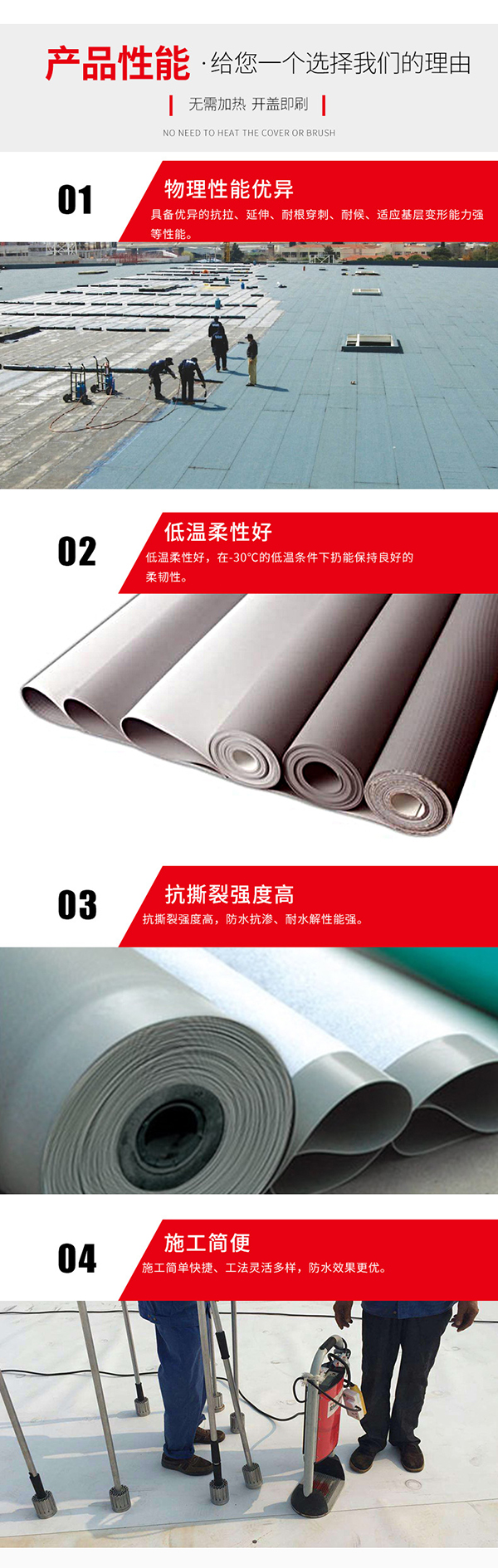 拉伸強度高,抗撕裂強度高,耐熱性好,勻質性好,低溫柔性好